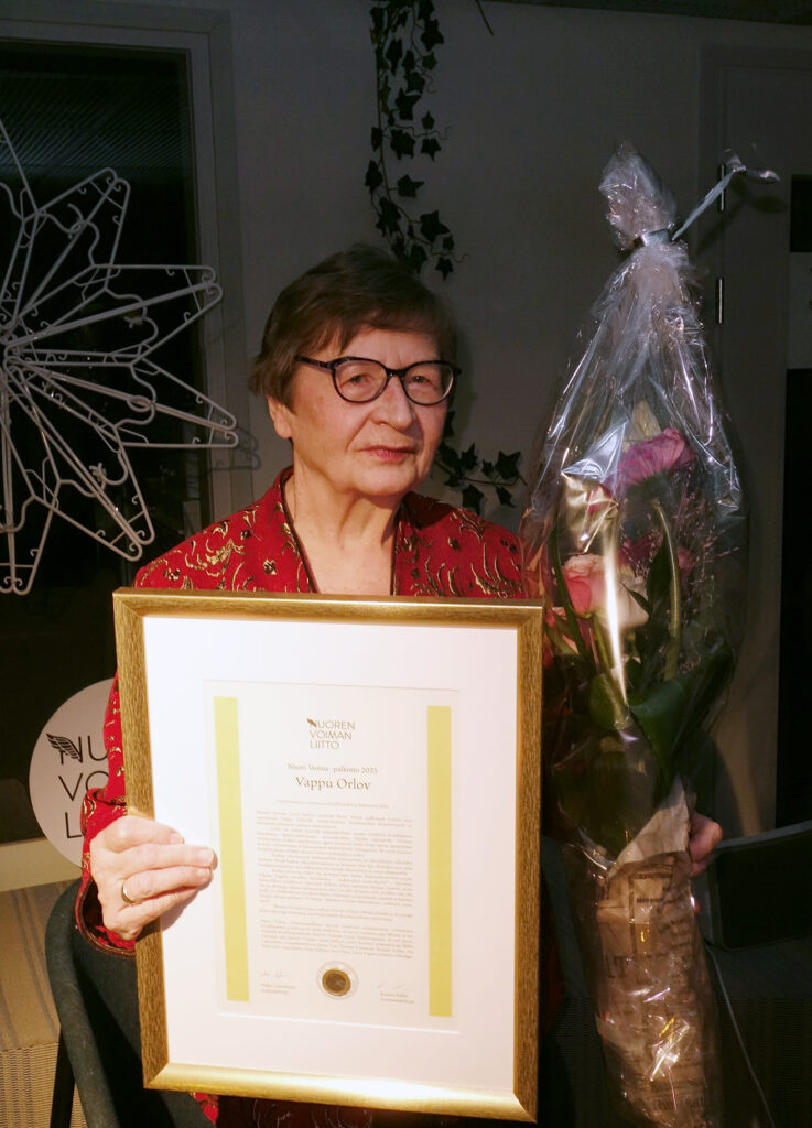 Vuoden 2025 Nuori Voima –tunnustuspalkinto myönnettiin perjantaina 5.12. Helsingissä Tekstin talolla suomentaja Vappu Orloville venäjänkielisen kirjallisuuden kääntämisestä ja käännöskirjallisuuden aseman edistämisestä. Uransa aikana ansioitunut kääntäjä on suomentanut niin venäläisen kirjallisuuden klassikoita kuin nykykirjallisuutta ja siten tehnyt venäläistä kulttuuria monisävyisyydessään ymmärrettäväksi suomenkielisille lukijoille.
